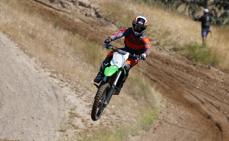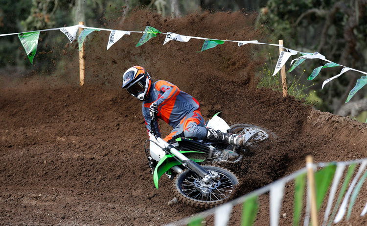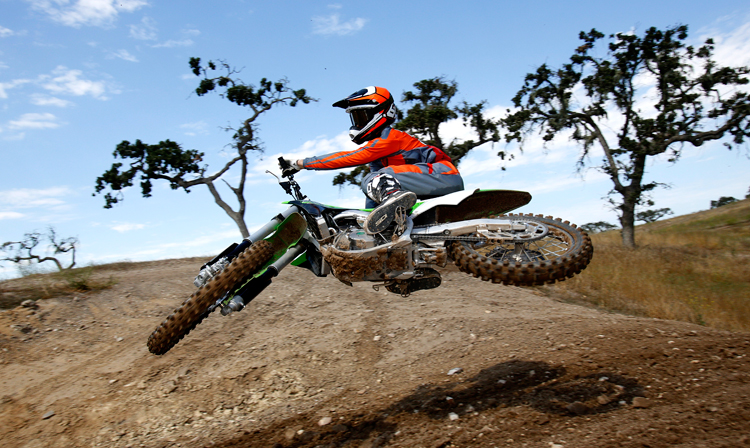 Yeah, we know you want to know about the performance. The new KX engine is very free revving but it does not spike and run through its power curve too fast, at least at Zaca, which is fairly thick in places when watered and ripped. Like most 250Fs, the bulk of its ponies are in the upper range. The KX comes on strong in the mid and seems to pull very well into the top and rev out very well. The bottom is not robust so being in the right gear is required to yank itself out of deep corners without having to abuse the clutch. Zaca has several power-robbing hills and our KX never felt underpowered for the most part. Gear spacing is very matched to the power and there were no real gaps. Shifting is smooth with or without using the clutch.