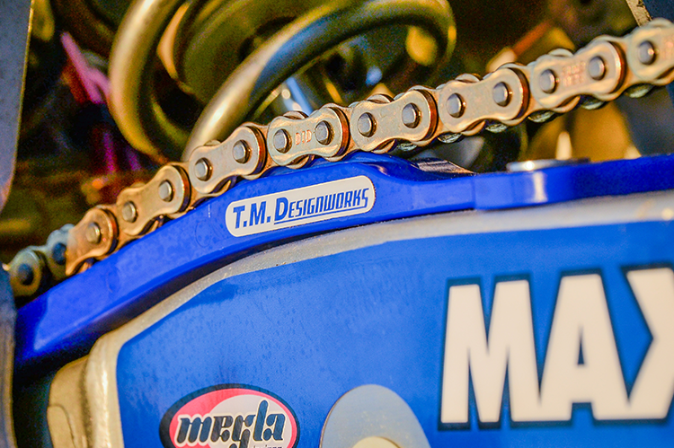 After a year or so of tuning and progressing with 250cc between the frame, we made a slight change to stiffen up the suspension due to the different riding styles. Stewart is a taller rider who hangs off the back of the bike more and rides silky smooth making it look effortless. I; however, ride over the front of the bike and like to hammer the rough stuff. Not an ideal style, but it’s what I’ve grown into. After the valving change, very minimal clicker changes were needed on a wide variety of terrains. From a local District 37 desert race to any given Big6 GP, the screwdriver almost never left the boot, save for a click or two on certain tracks. The suspension ran on the stiffer side and would suffer if anything ever got technical and rocky, but that was a compromise we were willing to take to get the best GP setting. The suspension soaked up all of the little chop with ease while having a progressive nature to resist bottoming through the large whoops and braking bumps.